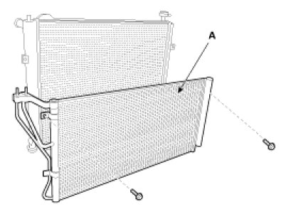 6. Remove the condenser (A) by lifting it up. Be careful not to damage the radiator and condenser fins when removing the condenser.