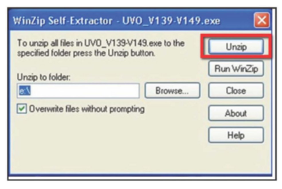 7. Insert a flash drive into USB slot on your computer; click "Unzip" and the files will be downloaded to the flash drive.