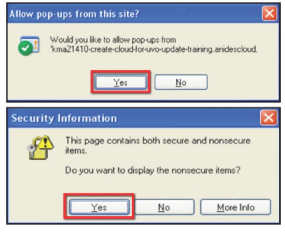5. If prompted with one or both confirmation boxes as indicated on the right, select "Yes" for both.