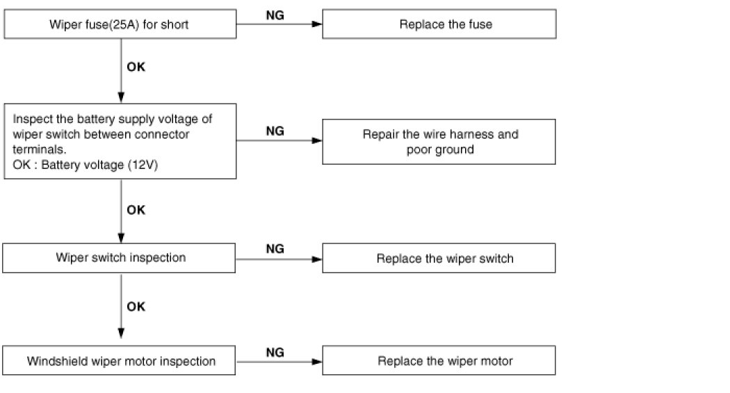Wiper low and wiper high do not work.