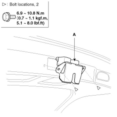 3. After loosening the mounting screws, then remove the latch assembly (A).