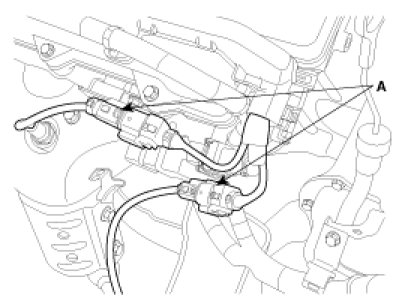 3. Disconnect the oxygen sensor connectors(A).