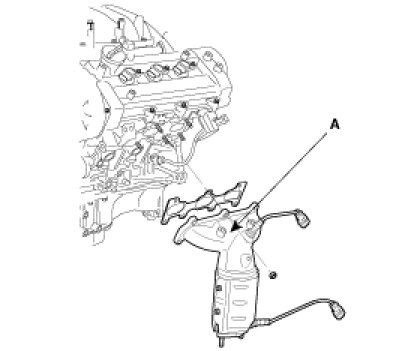 6. Remove the exhaust manifold assembly(A).