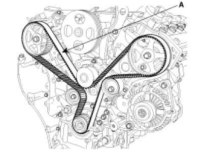 12. Remove the timing belt(A).