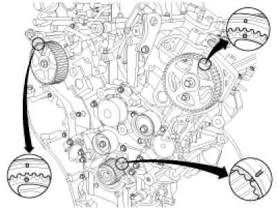 (2) Ensure the locations of the timing marks for each sprocket.