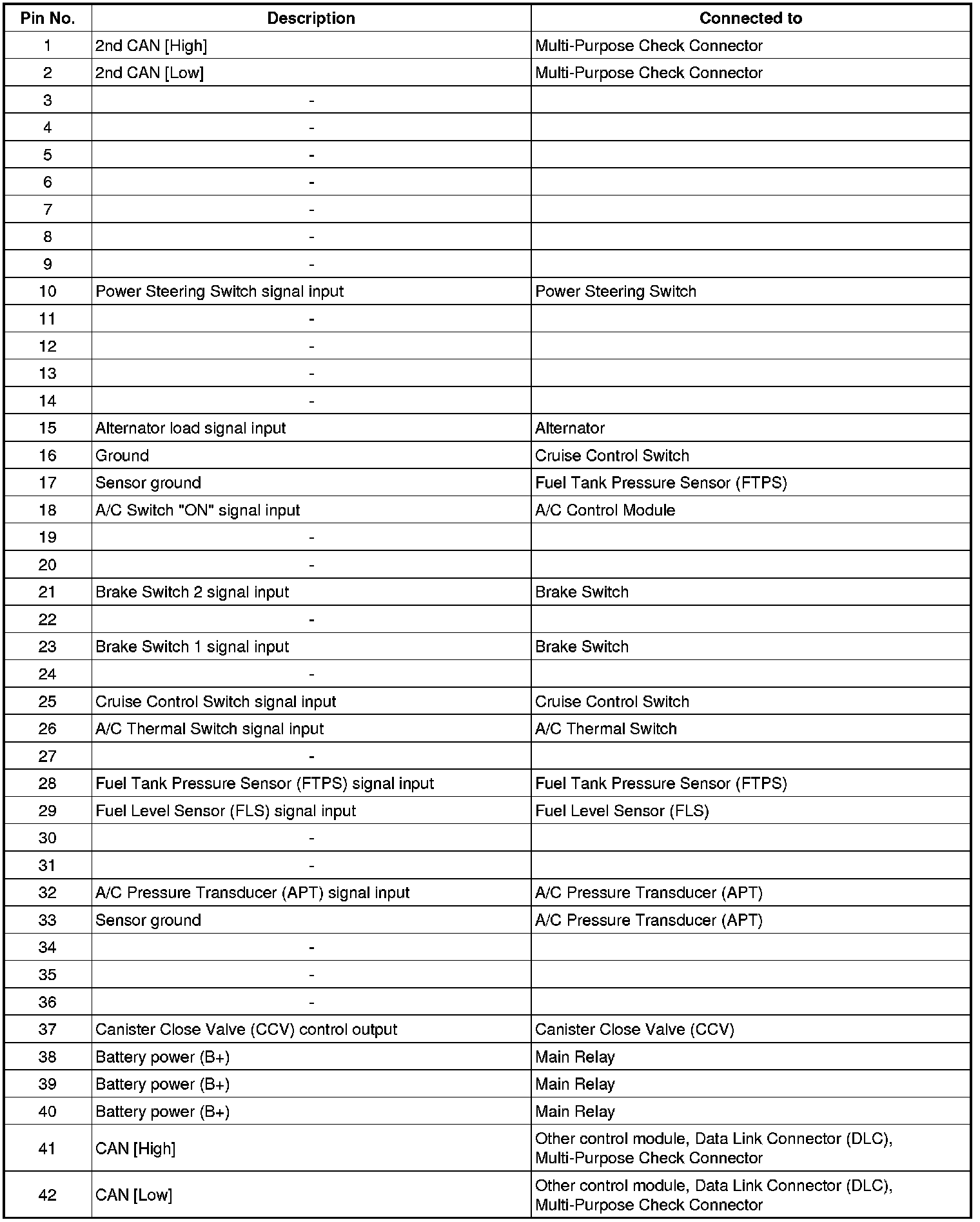 ECM Terminal Input/Output Signal