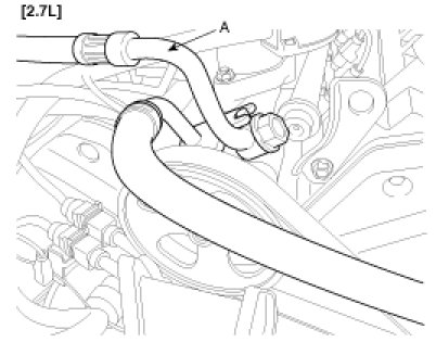 3. Disconnect the pressure tube (A) from the power steering pump by loosening the eye bolt.