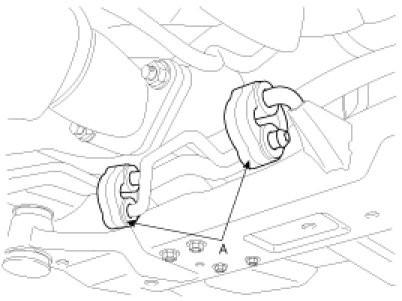 8. Remove the muffler rubber hanger (A).