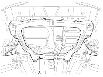 10. Remove the sub-frame (A) and sub-frame stay by loosening the mounting bolts and nuts.