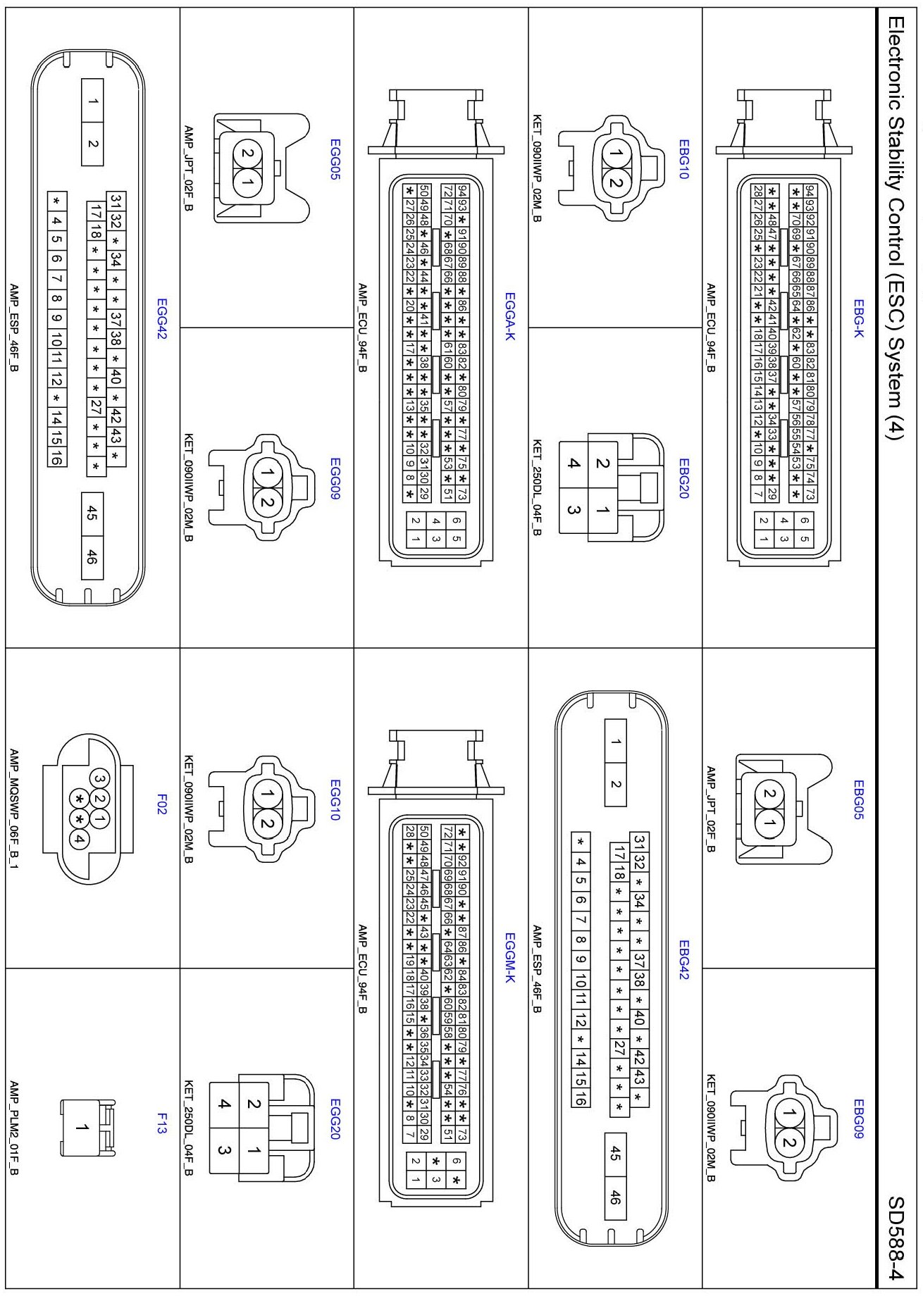 Electronic Stability Control (ESC) System (4) Connector Pin Outs: