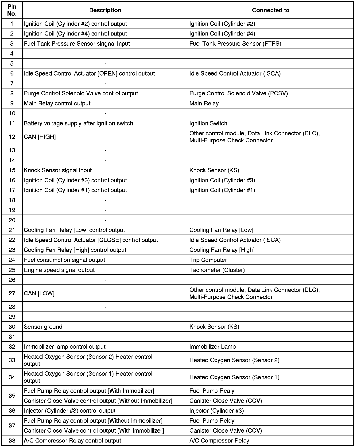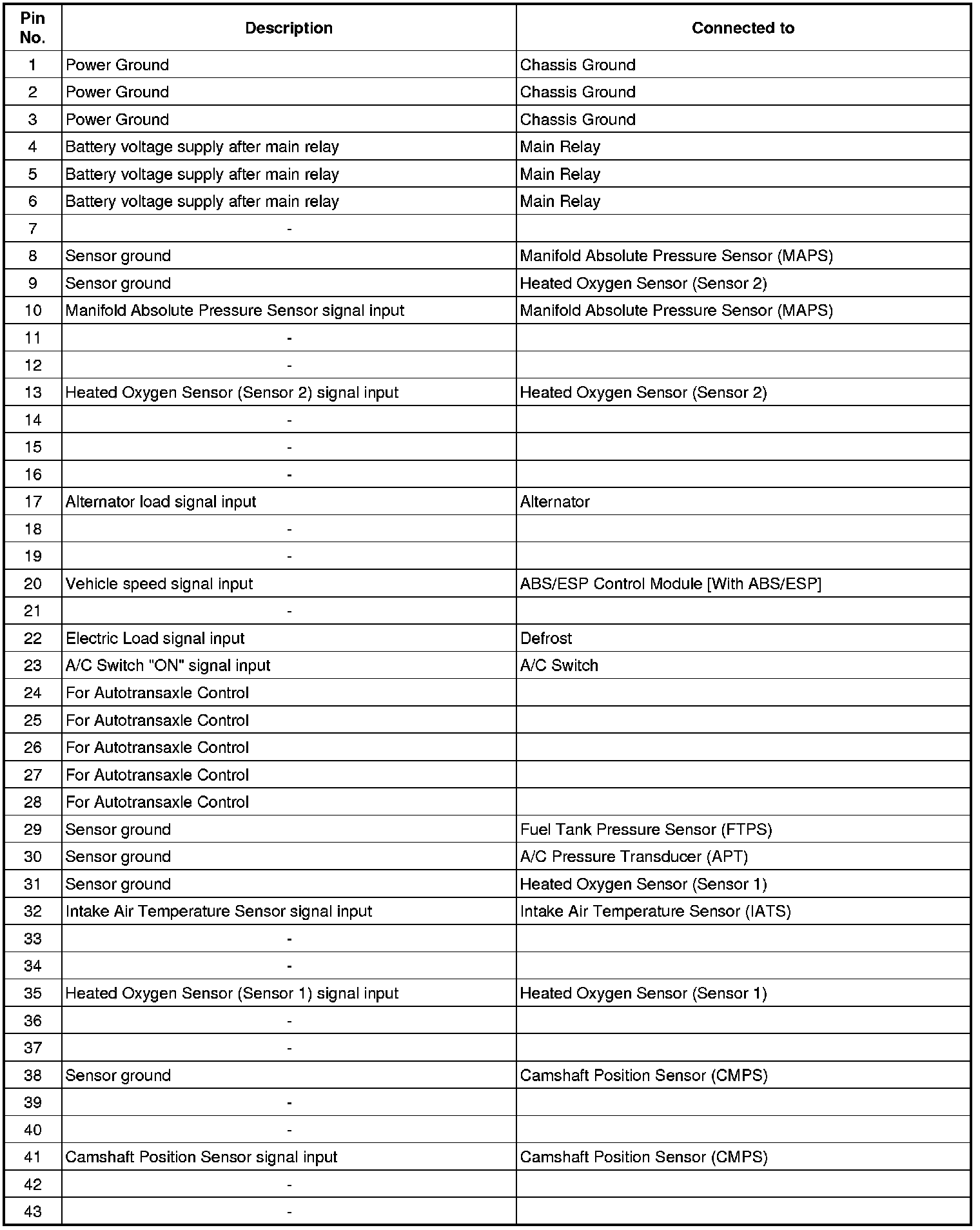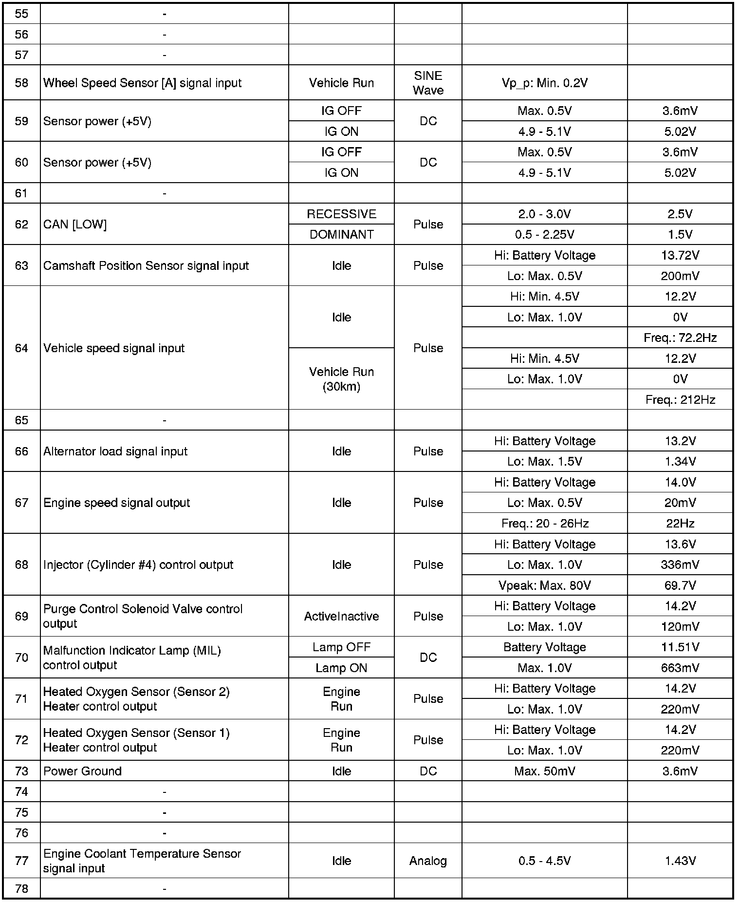 ECM Terminal And Input/Output signal