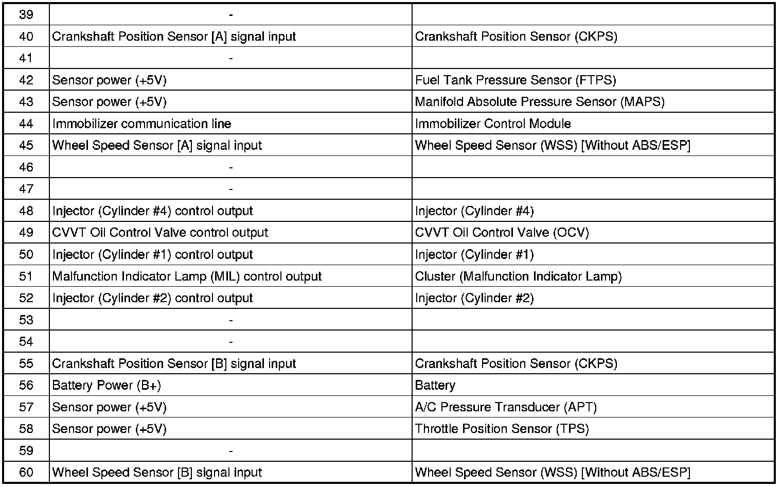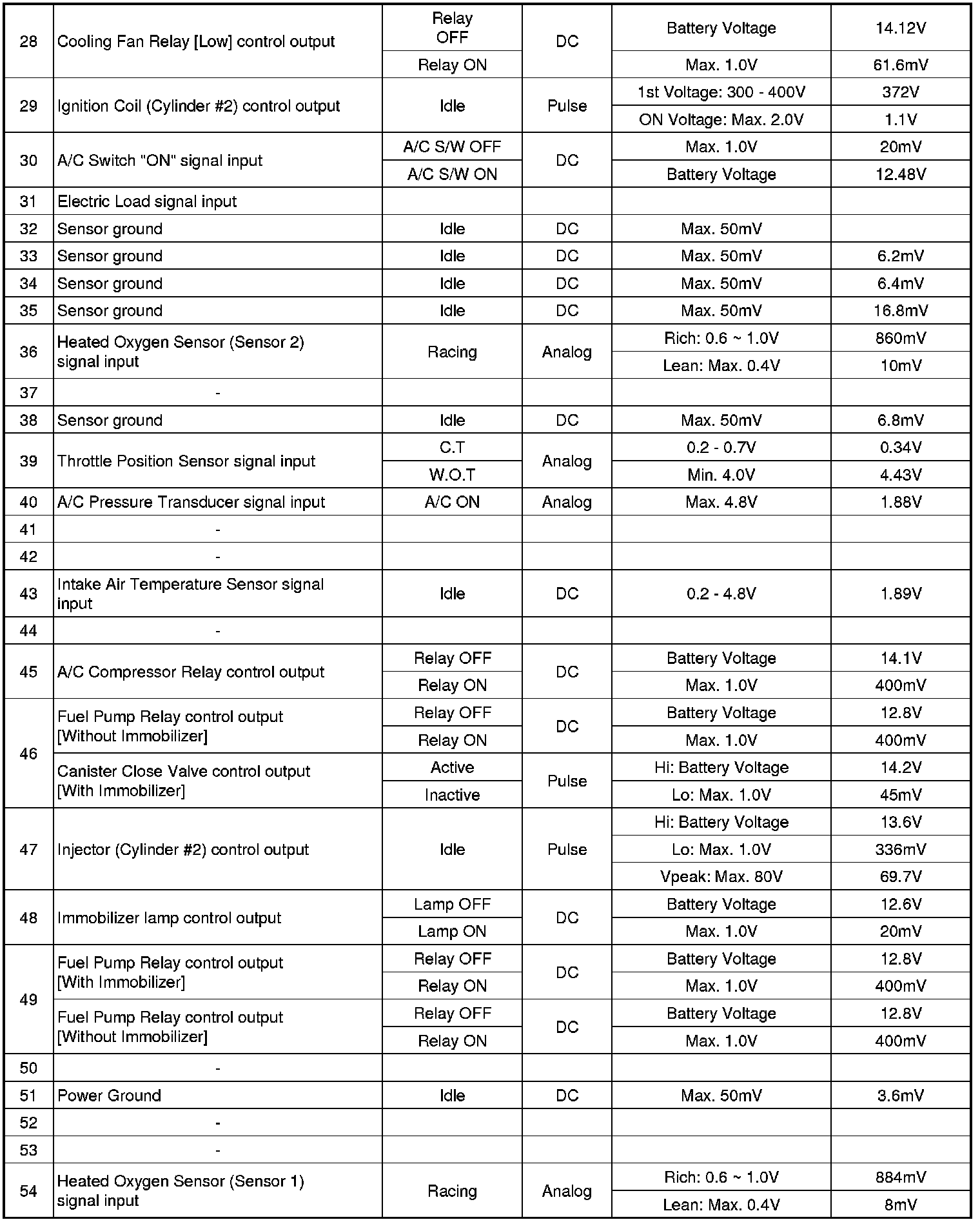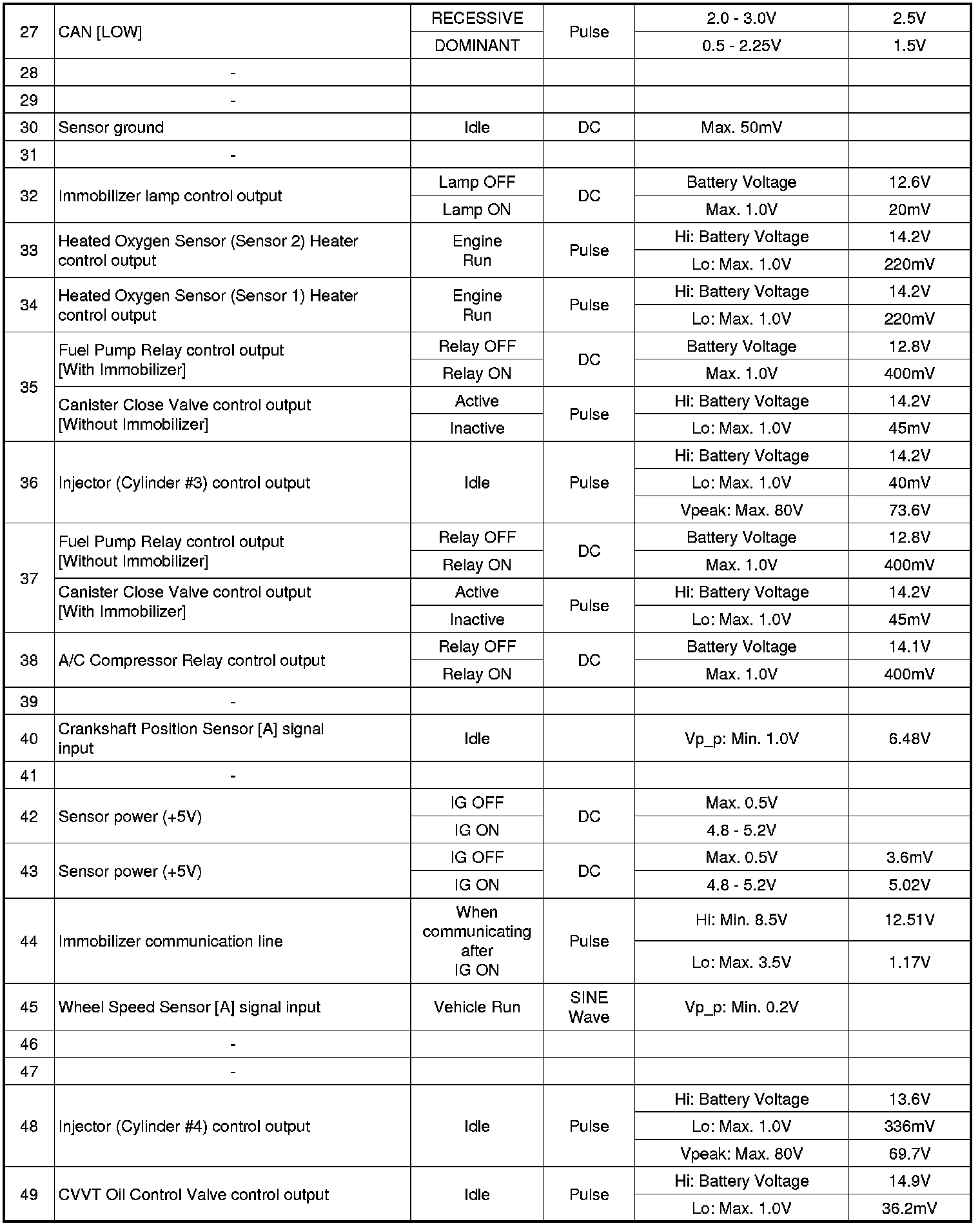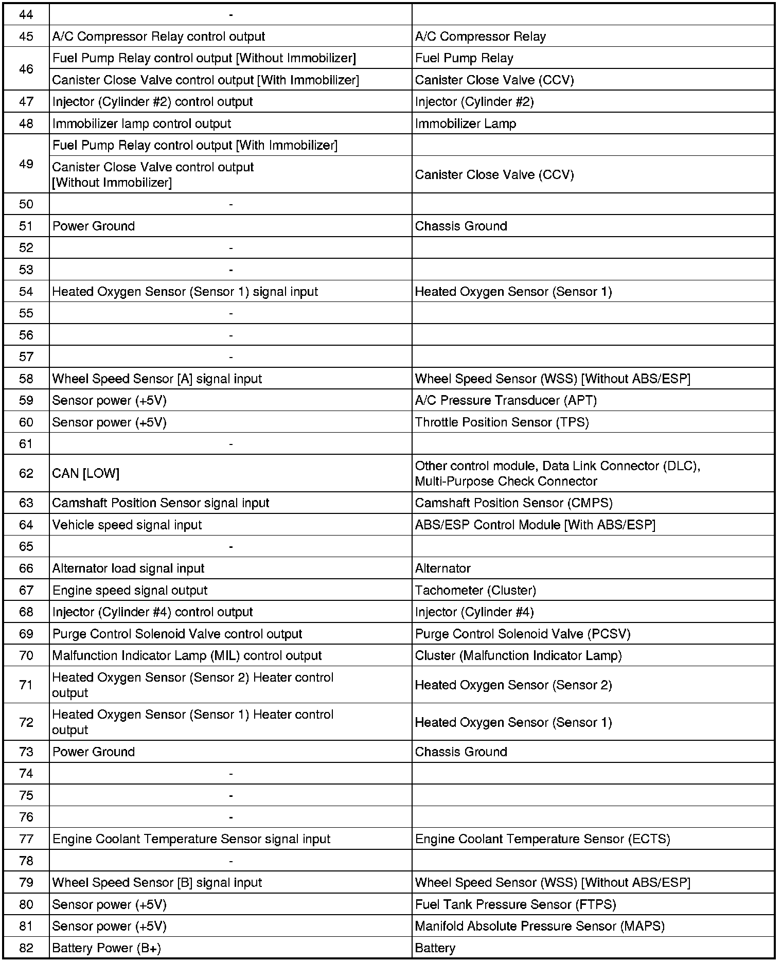 ECM Terminal And Input/Output signal