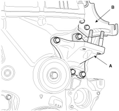 7. Remove the alternator bracket(B).