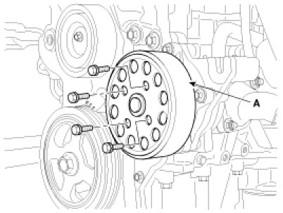 9. Remove the water pump pulley(A).
