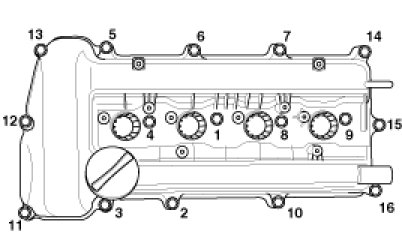 12. Tighten the cylinder head cover bolts(A) with the order and steps.