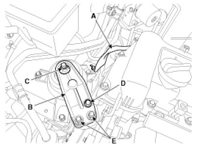 6. Remove the engine mounting bracket(A).