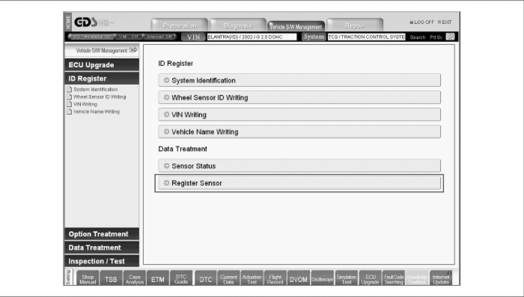 2. Select the model and perform the sensor registration procedure according to instruction of the GDS as follows.