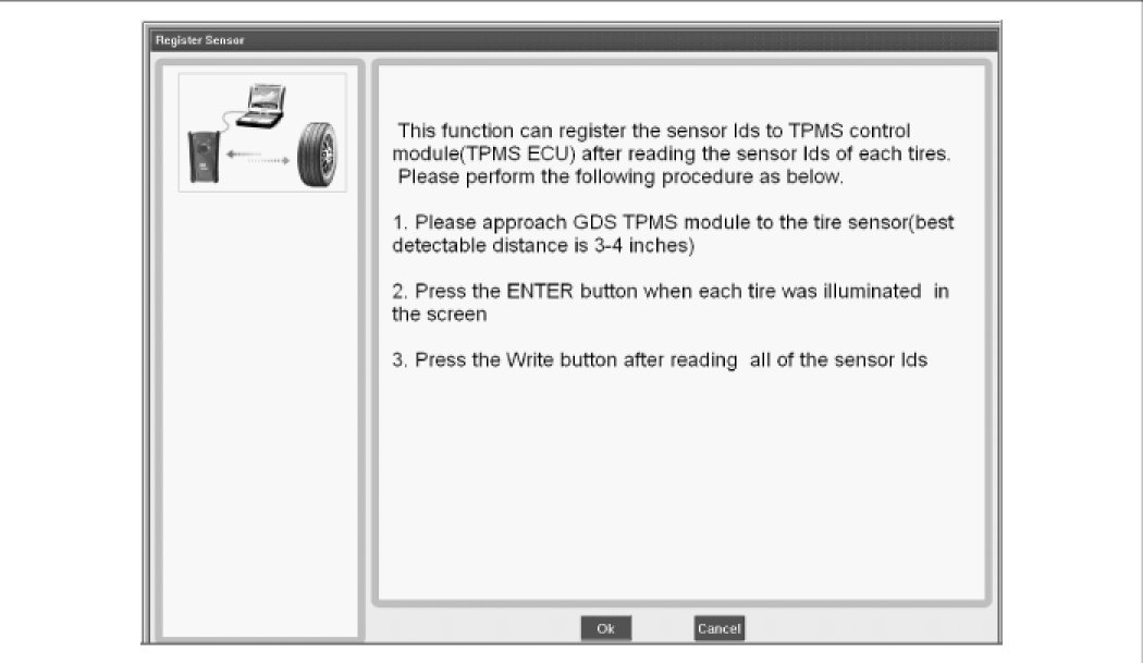 If the sensor registration procedure is not performed by GDS after replacing the TPM sensor or Receiver, TPMS is not operated.