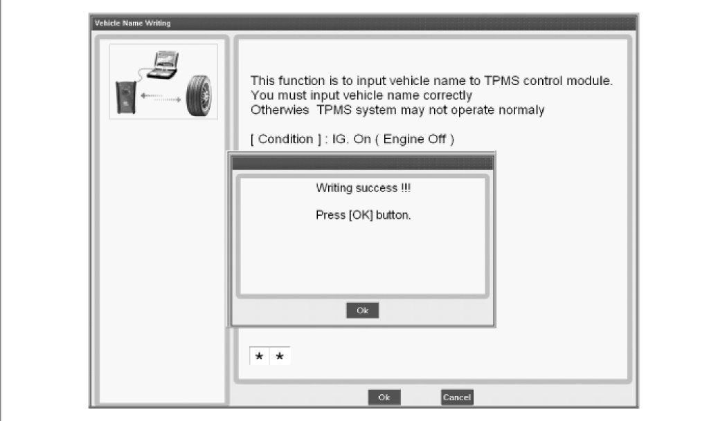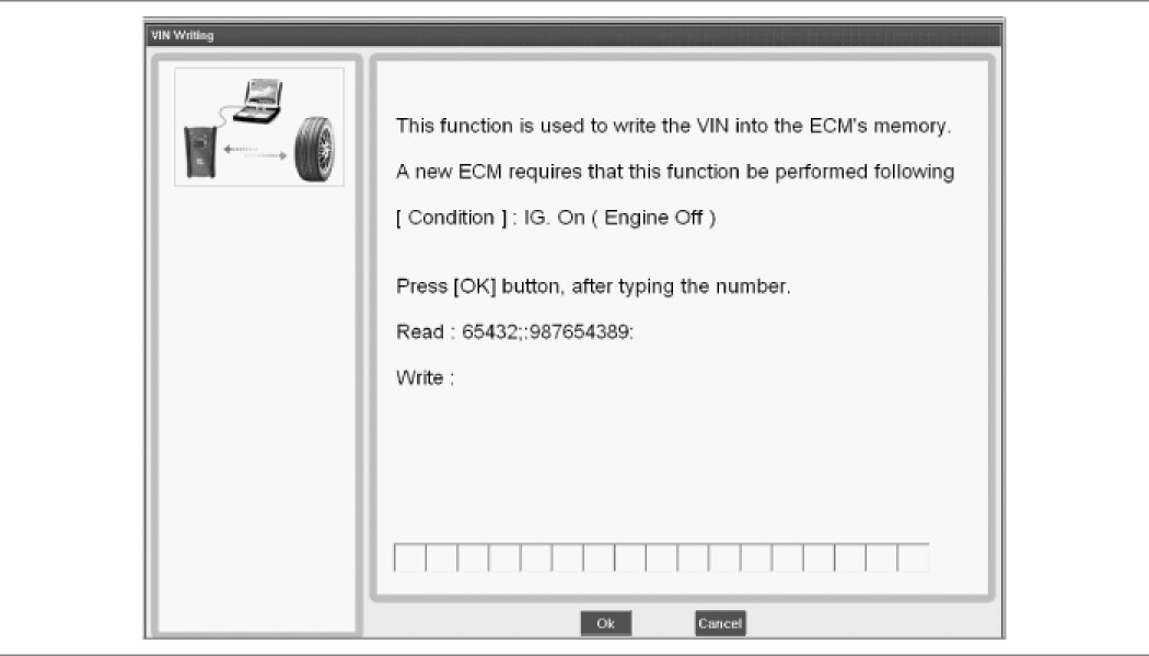 2. Select the model and perform the VIN and vehicle name writing procedure according to instruction of the GDS as follows.