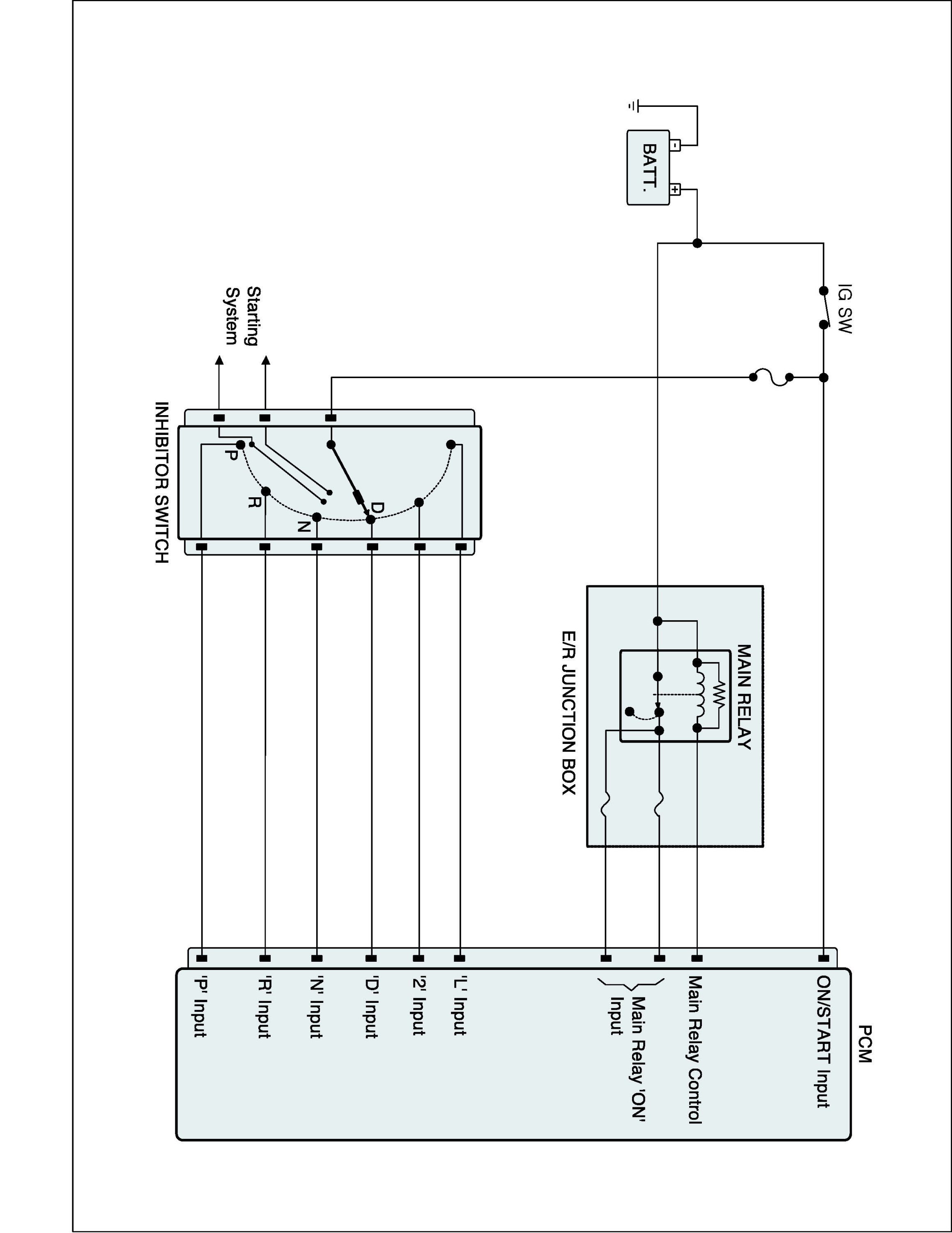 The Transaxle Range Switch sends the shift lever position information to the TCM using a 12 V (battery voltage) signal. When the shift lever is in the D (Drive) position the output signal of Transaxle Range Switch is 12 V and in all other positions the voltage is 0 V. The TCM judges the shift lever position by reading all signals, for the Transaxle Range Switch, simultaneously.