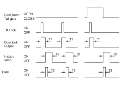 2. If TLOCK signal is received at any one of Door, Hood and Tail gate is opened, turn LOCK output ON and Hazard lamp and horn output is not operated.