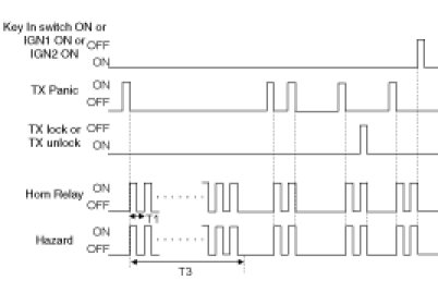 3. If OPEN ->CLOSE after (2), turn Hazard lamp and Horn output ON one time for T3.
