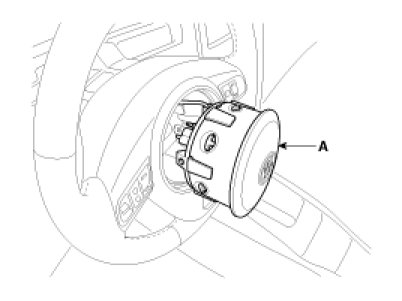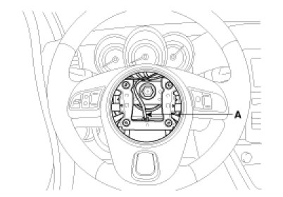 3. Remove the steering wheel after loosening the nut and disconnecting the connector (A).