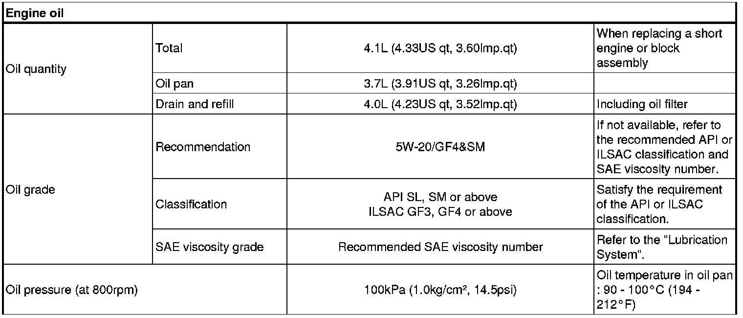 Engine Oil Pressure: Specifications