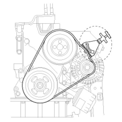 Apply a force of 98N (10 kgf, 22 lbf), and measure the deflection between the alternator and water pump pulley.
