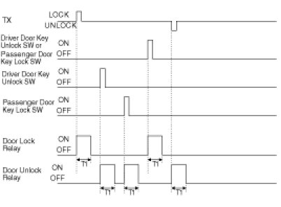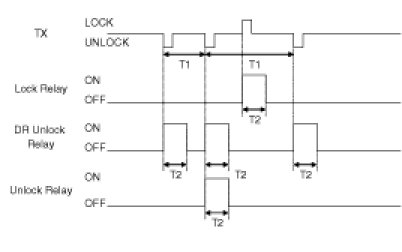 (3) Turn Driver Unlock Relay output ON during T2 when receiving TUNLOCK signal. However, turn Driver Unlock Relay, Unlock Relay (Central Unlock) output duting T2 if TUNLOCK is received within T1.