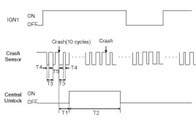 (2) Judge Sensor Fail if Crash Sensor signal is more than T3, Crash Door Unlock is not operated.