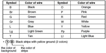 The following abbreviations are used to identify wire colors in the circuit schematics.