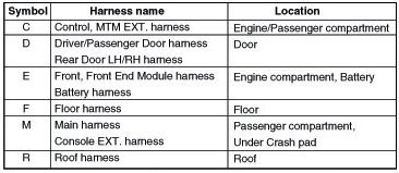 *It depends on vehicles, it is necessary to check the harness name symbol on the harness layouts for detailed symbol.
