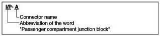 A junction block identification symbol consists of a wiring harness location classification symbol corresponding to a wiring harness location and number corresponding to the connector in the junction block.