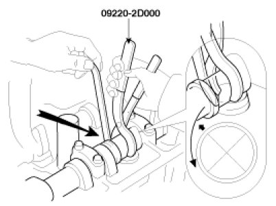 (2) Using the SST(09220 - 2D000), press down the valve lifter and place the stopper between the camshaft and valve lifter and remove the special tool.