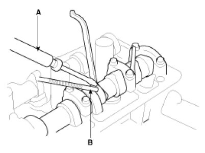 A. Using a thickness gauge, measure the clearance between the tappet shim and the base circle of camshaft.