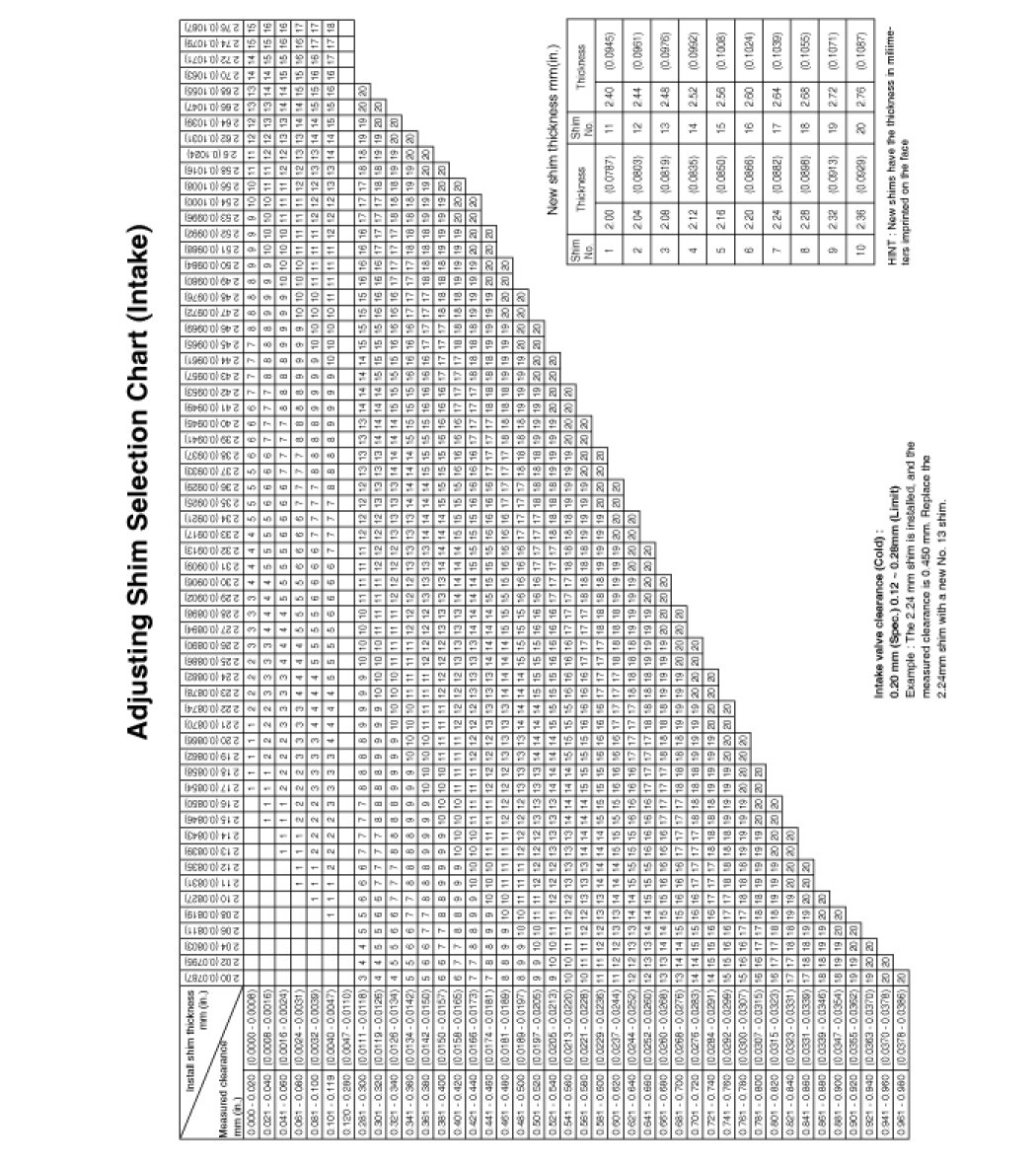 Intake : 0.17 - 0.23mm (0.0067 - 0.0091in.)