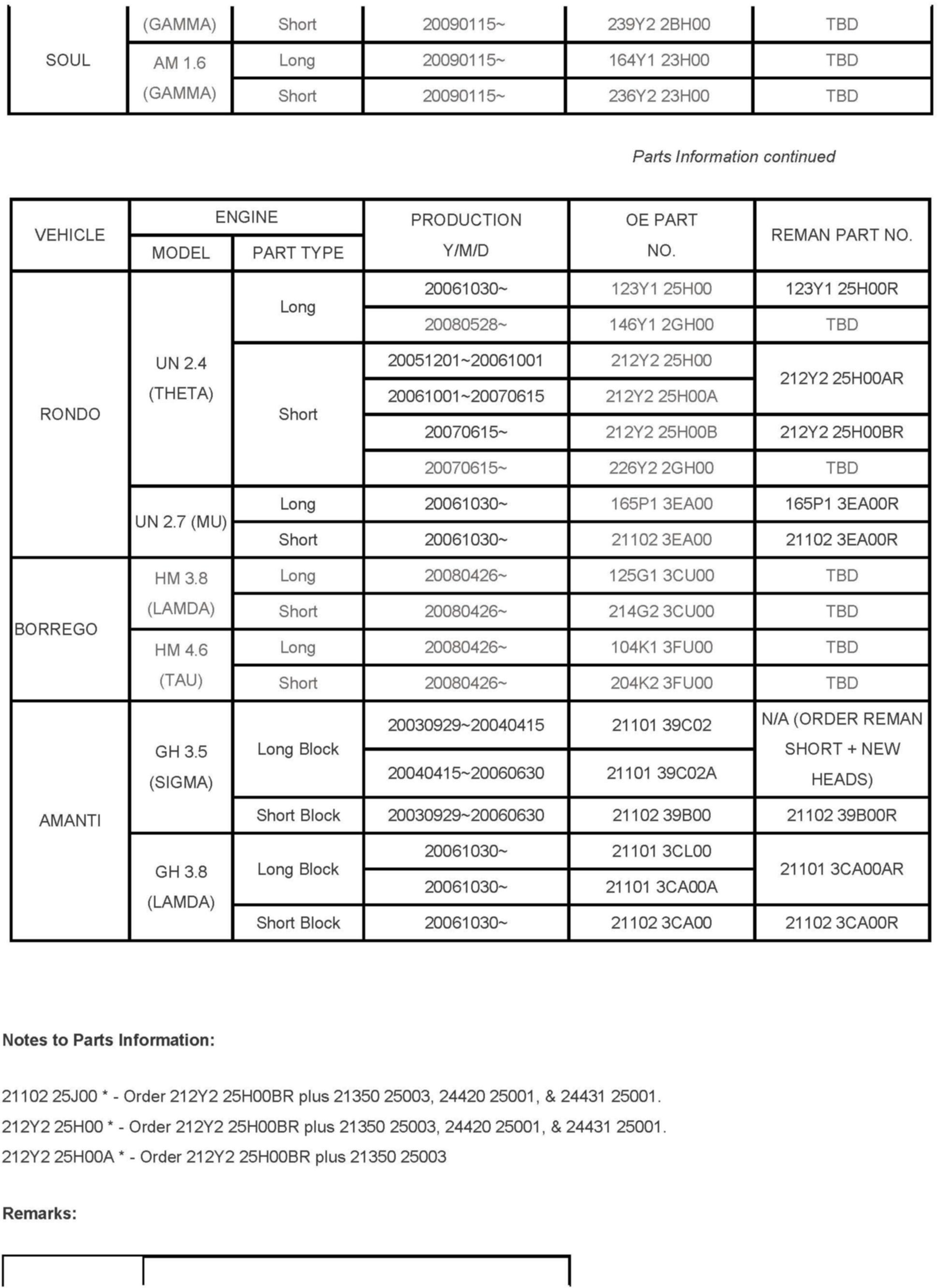 This bulletin introduces the Kia Remanufactured Engine Program and related procedures. Effective May 2008, KMA is supplying remanufactured short and long block engines. Initial launch was the 3.5L Sigma engine only. The Remanufactured Engine Program has expanded to include additional engines, and more may be added in the future.
