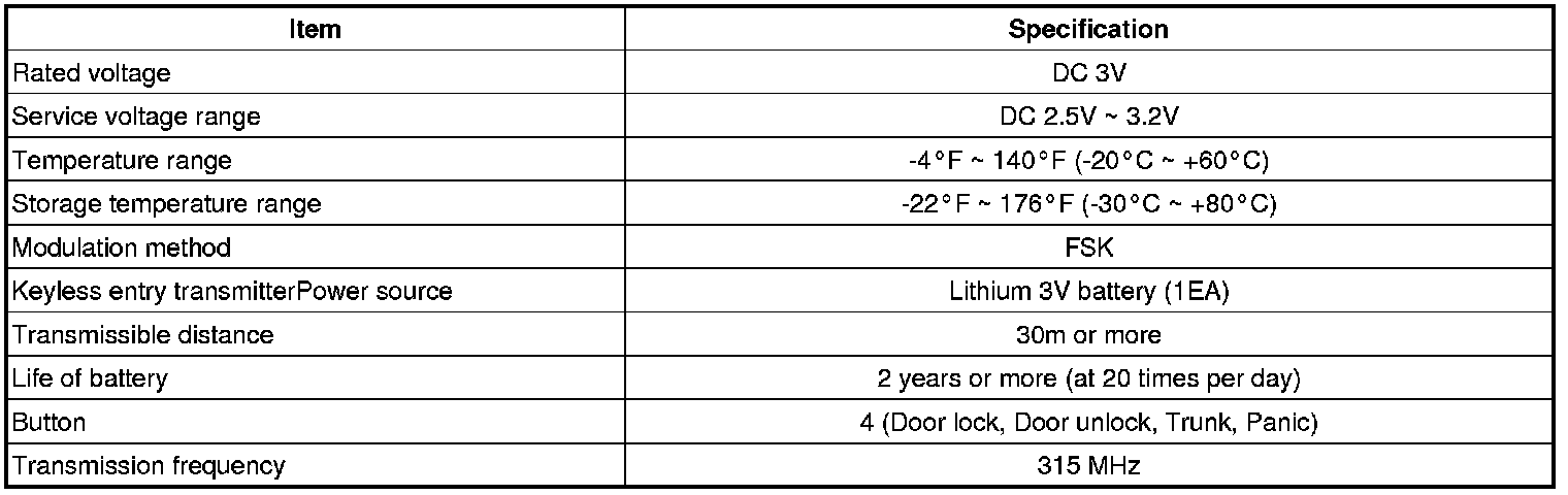 Keyless Entry: Specifications