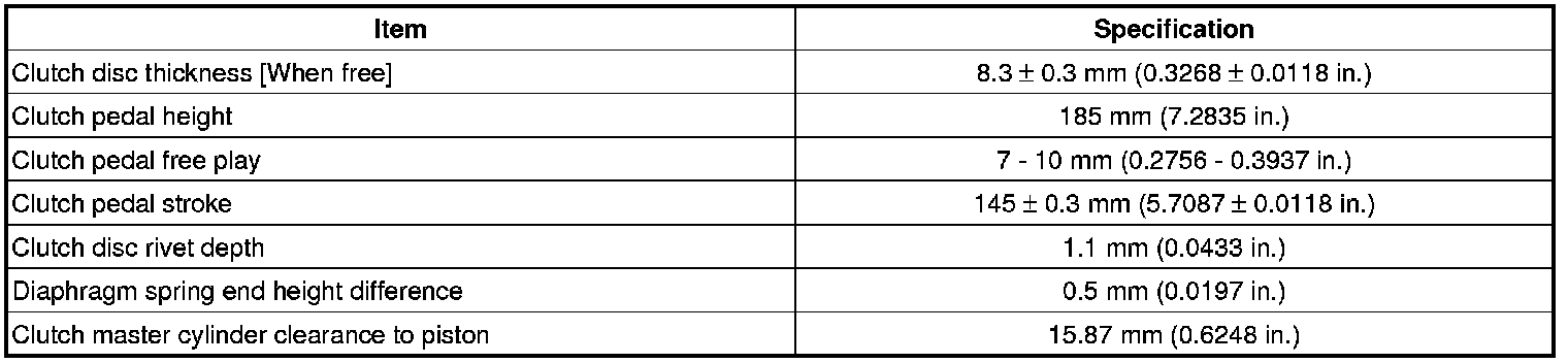 Clutch, M/T: Specifications
