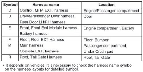Electrical wiring connectors are classified according to the wiring parts in the Harness Layouts.