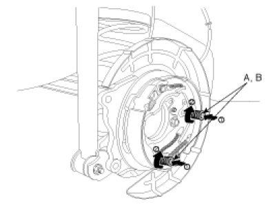 7. Remove the parking brake cable (B) from the brake shoe (A).