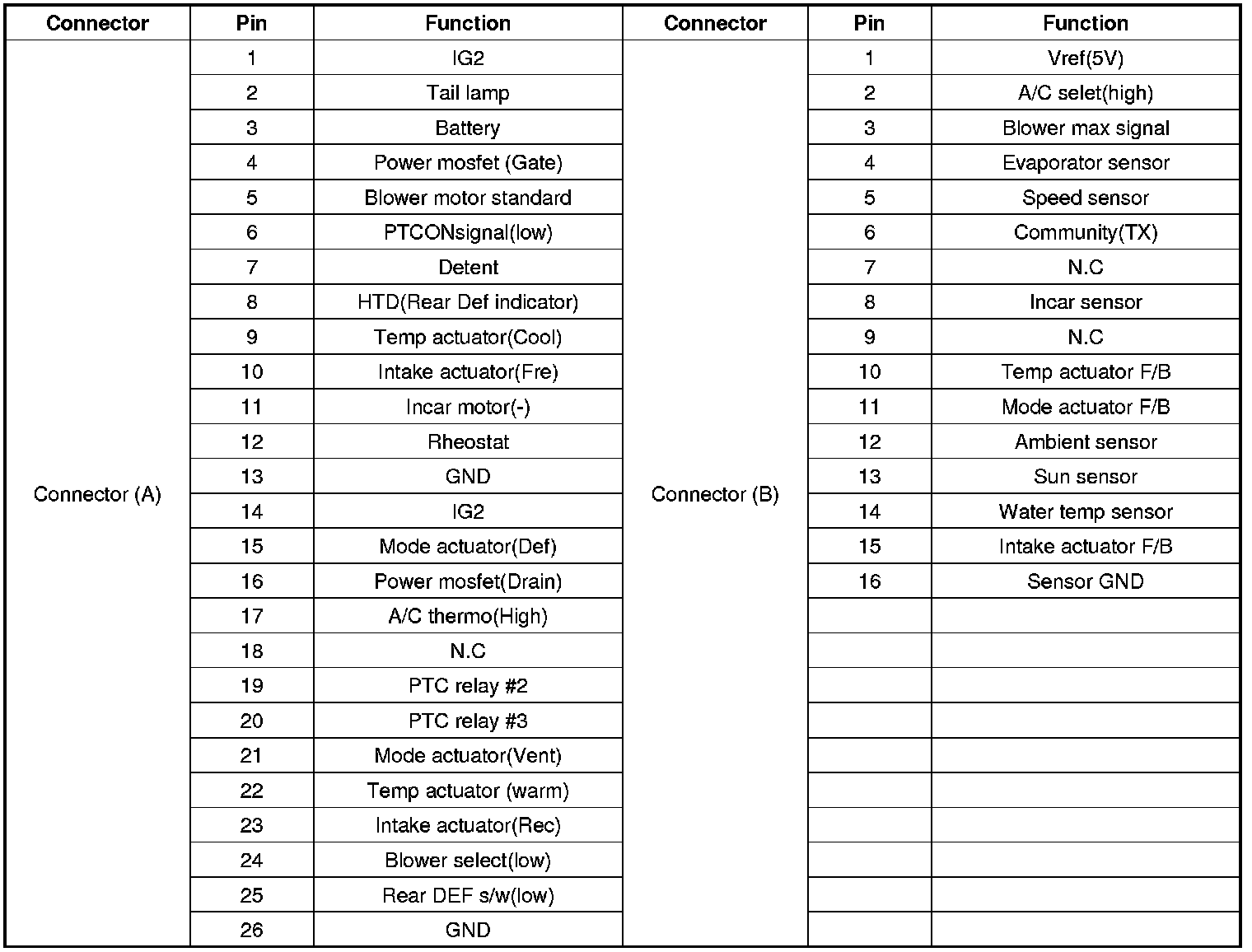 Connector pin function