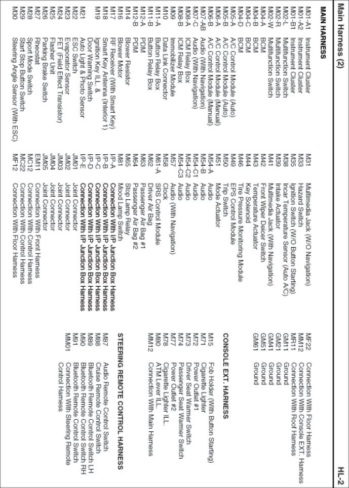 Main Harness Index: