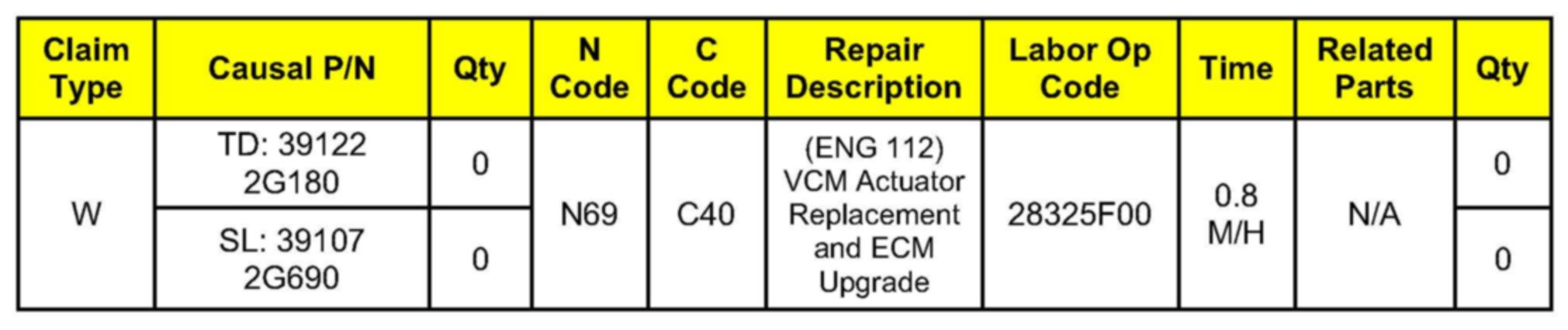 VCM ACTUATOR REPLACEMENT AND ECM UPGRADE-TD/SL 2.0/2.4L MIL ON WITH DTC P200A