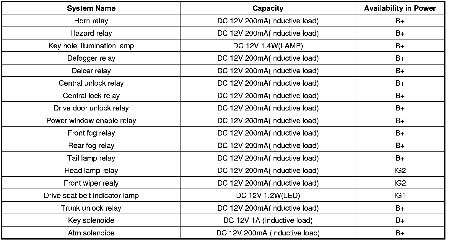 Electrical Specifications