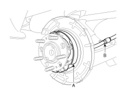 5. Remove the rear brake lining and parking brake cable(B). (refer to BR group-rear brake)