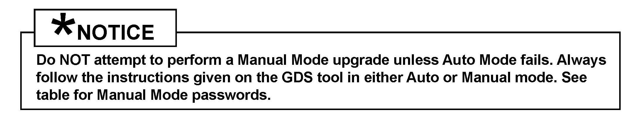MANUAL MODE UPGRADE PROCEDURE: