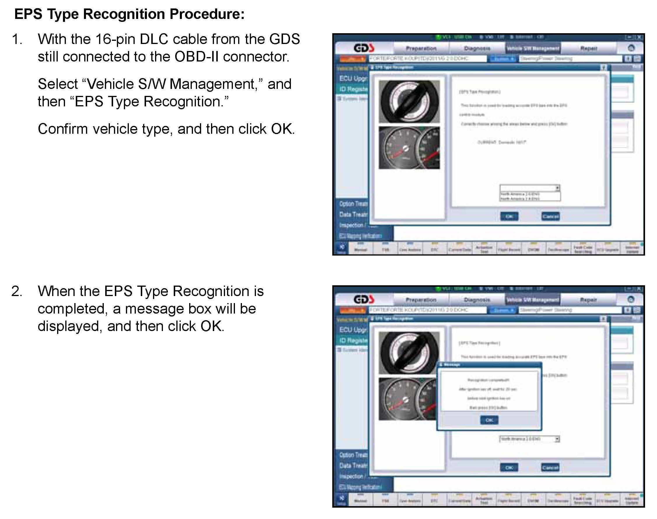 This bulletin provides information related to the EPS ECM software upgrade of some EGO equipped 2010/2011 MY Forte (ID) vehicles produced before June 1 2011 which may experience a Malfunction Indicator Lamp illuminated with the EPS (Electric Power Steering or Motor Driven Power Steering) system-related DTC G1290