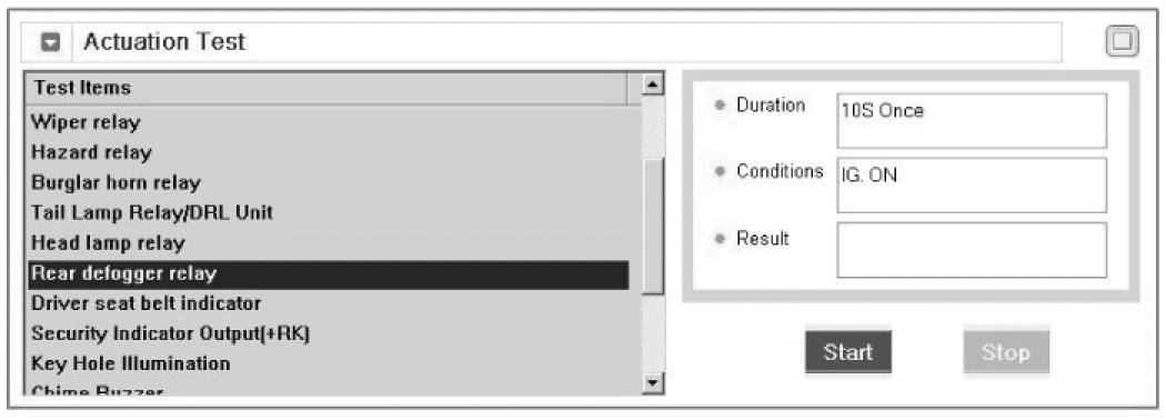 4. To check the input value of rear window defogger switch in force mode, select option "ACTUATION TEST".